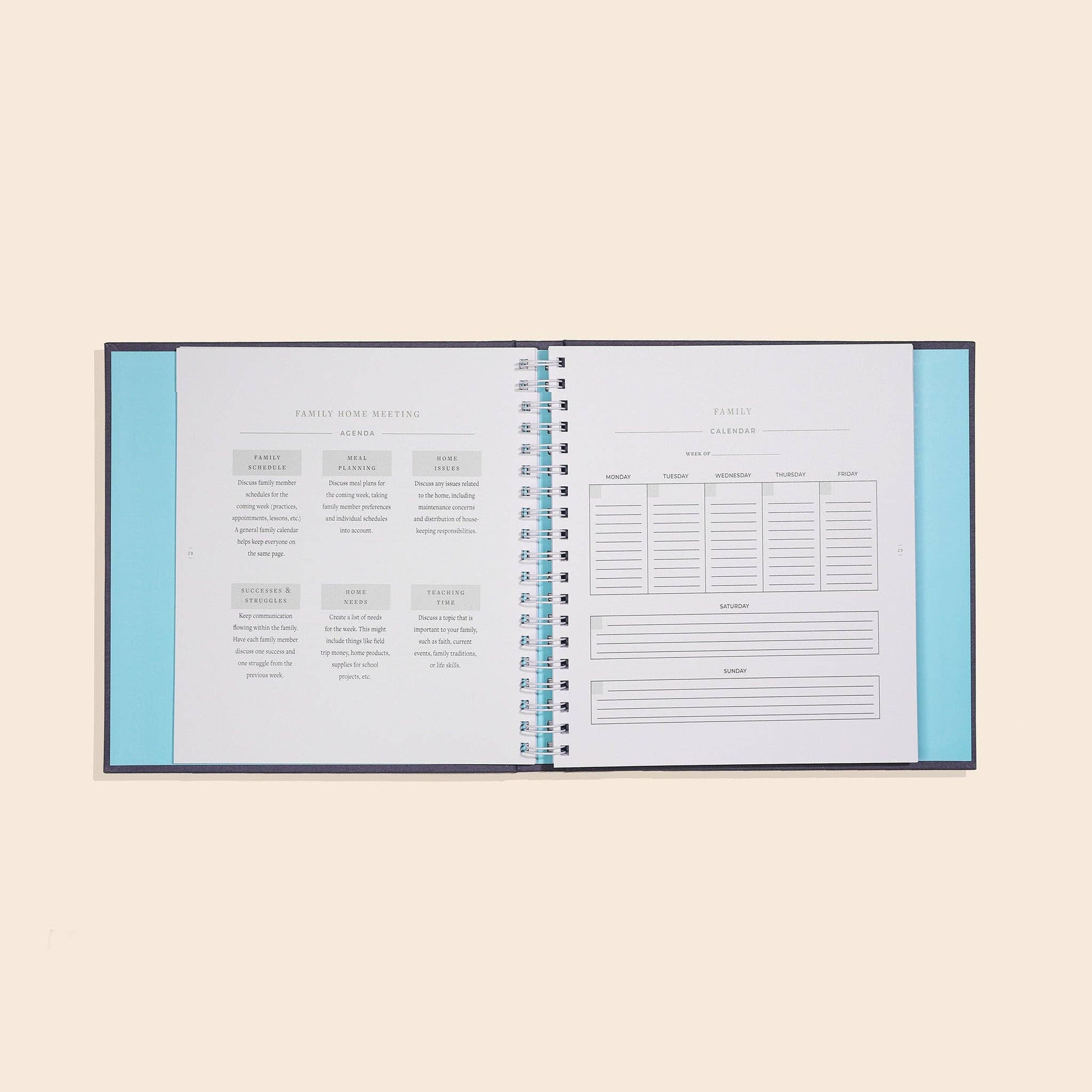 A premium home management system designed to bring calm and clarity to busy households—perfect for gifting to new homeowners, moms, or anyone craving order. Created by professional organizer and bestselling author, Nikki Boyd, this elegant linen bound planner includes customizable charts, checklists, and schedules to streamline everyday routines.