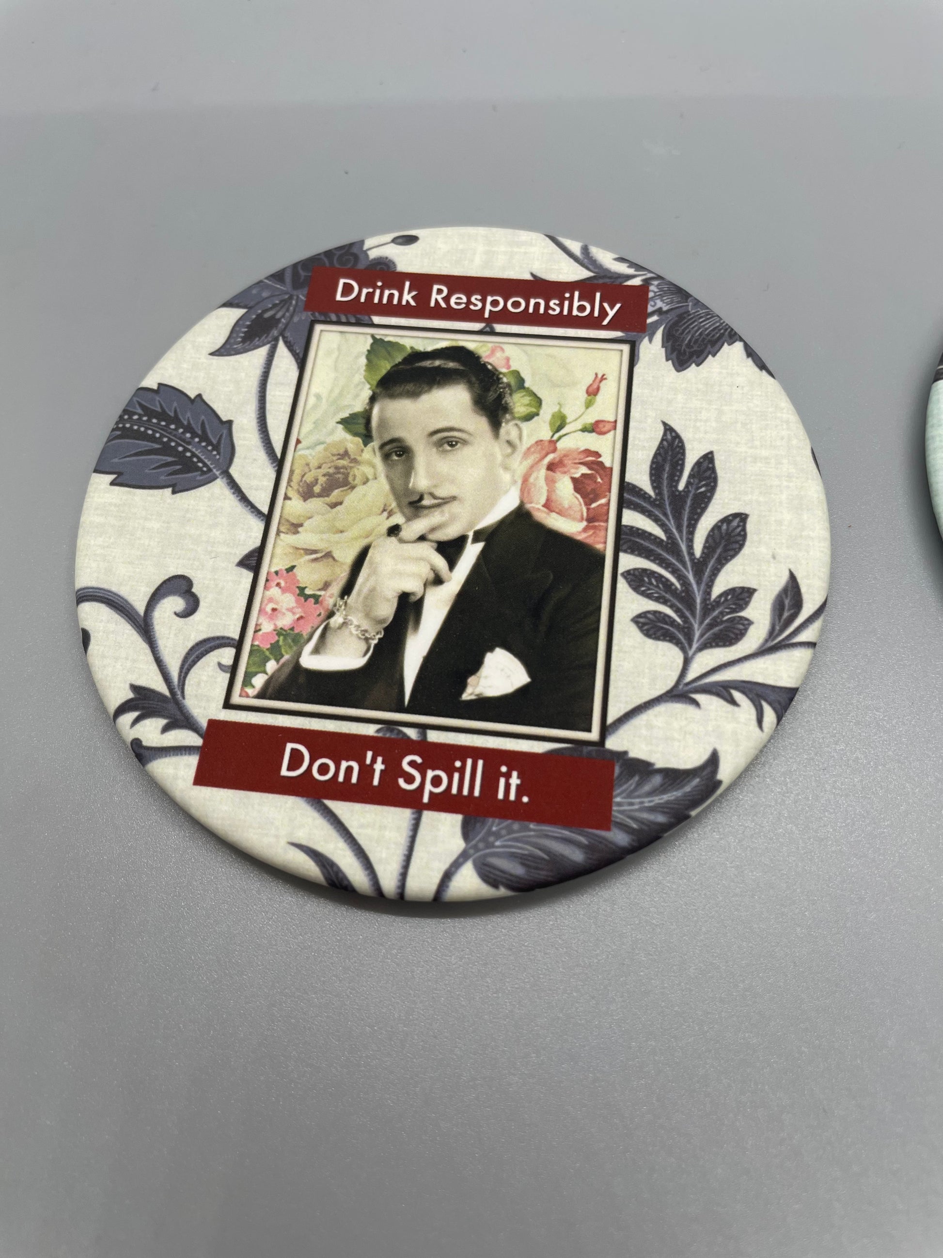 Coasters are water-resistant soft touch matte finish and cork backed (your coffee table will thank you.)