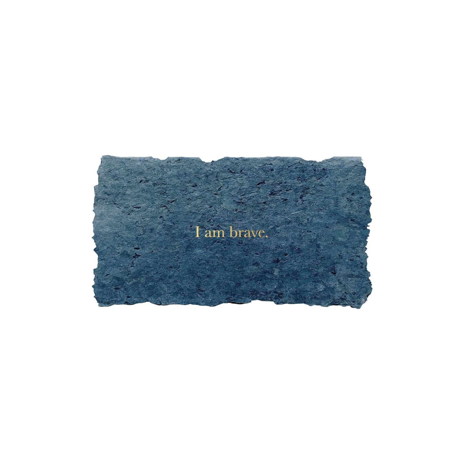Deep indigo handmade paper with gold foil. The things you tell yourself about yourself shape who you are and who you will become. This handmade paper affirmation is meant for your mirror, desk, wall, or any place where a little note-to-self will be a pretty reminder worth saying over and over. Handmade paper card with four full deckled edges, approximately 2 1/4 inches x 4 1/4 inches. Front is foil printed. Comes with a small card describing the affirmations collection, and another with photos and a little information about our process. Affirmation card reads "I am brave".