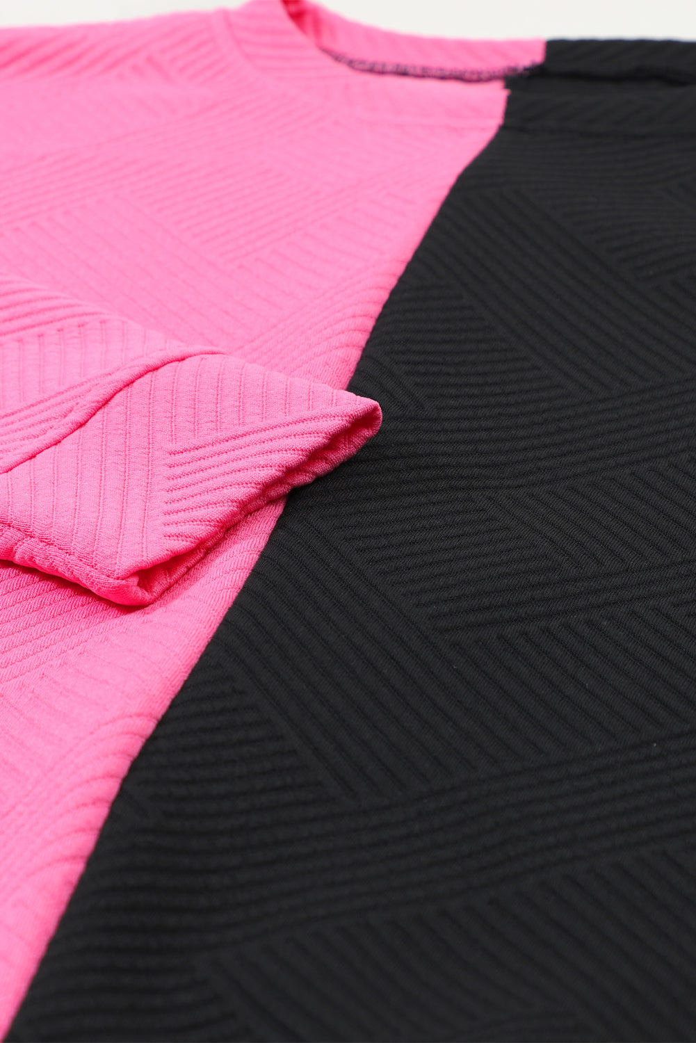 Multicolor Contrast Color Block Textured Casual 2pcs Outfit
