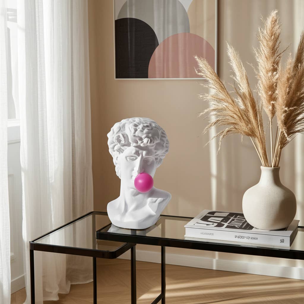 • EYE-CATCHING PINK DETAIL - Features a vibrant bubble gum element that contrasts the white resin for a humorous and artistic focal point, drawing attention and sparking smiles every time.
