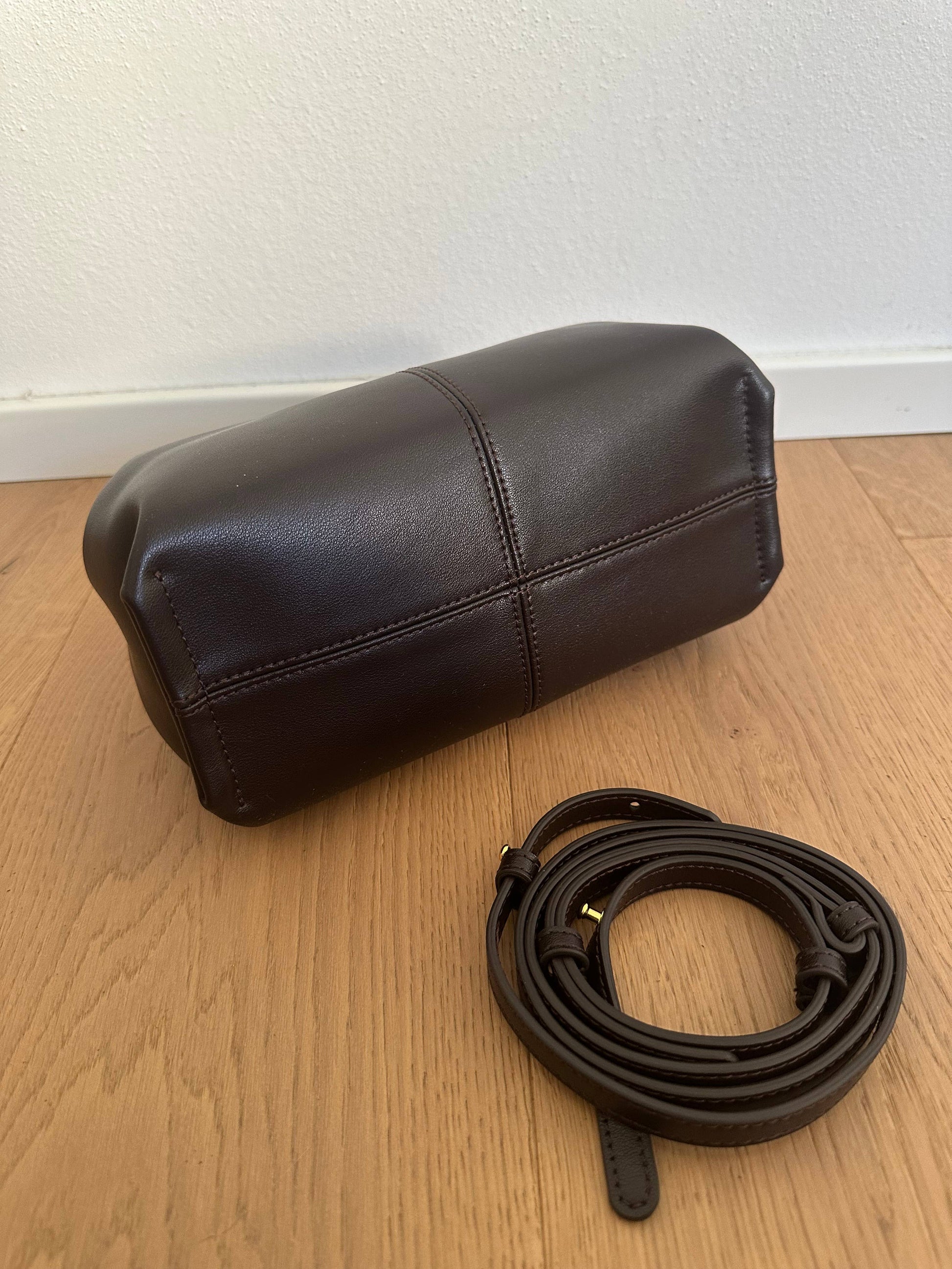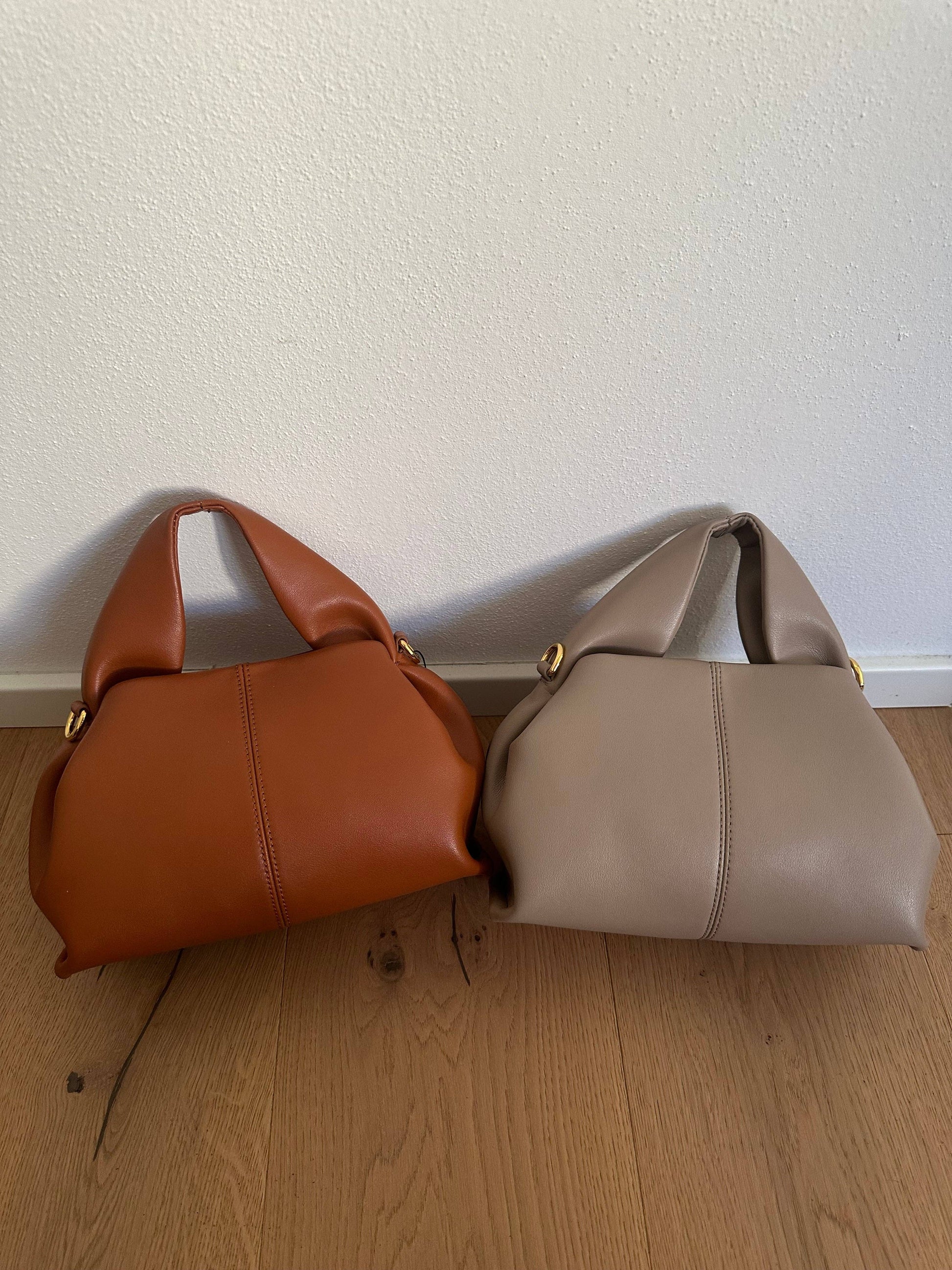 🍁Bag with a unique shape and single handle made of genuine calf leather.